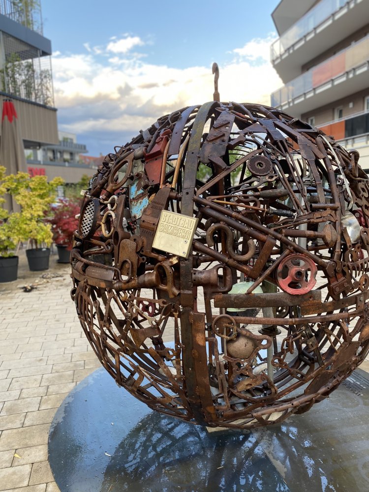 Nach mehreren Monaten Planung, Organisation und viel Schweißarbeit steht die Wunderkugel nun im Ulanenpark. Initiator Jonny Hübner und Künstler Ingo Siegismund haben in mehrmonatiger, mühevoller Kleinarbeit aus der Idee eine moderne Skulptur geschaffen, eine hohle Kugel mit ca. 2 m Durchmesser, die aus vielen verschiedenen Metallteilen besteht.
